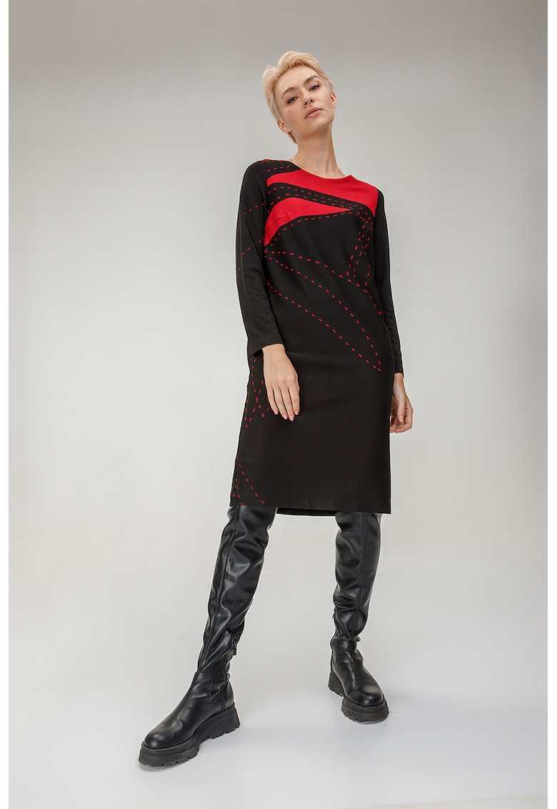 - elastan Imprimeu: geometric Croiala: dreapta Lungime: midi Decolteu: la baza gatului Lungime maneca: maneca lunga Compozitie Exterior: 91% viscoza