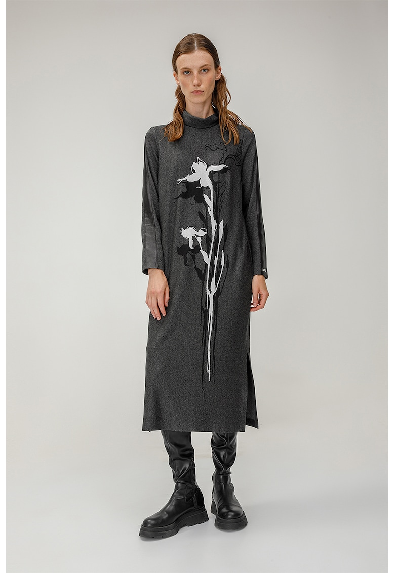 - elastan Imprimeu: floral Croiala: dreapta Lungime: midi Guler: inalt Lungime maneca: maneca lunga Detalii: slituri laterale Sistem inchidere: fara inchidere Compozitie Exterior: 91% viscoza