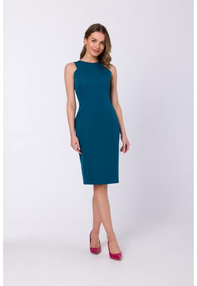 - elastan Imprimeu: uni Croiala: dreapta Lungime: midi Decolteu: rotund Lungime maneca: fara maneca Detalii: produs in europa Compozitie Exterior: 95% poliester