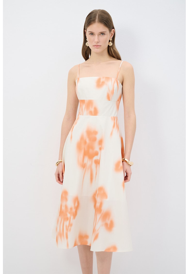 - portocaliu deschis Stil: casual Material: bumbac Imprimeu: floral Croiala: evazat Lungime: midi Decolteu: patrat Barete: ajustabile Lungime maneca: fara maneca Detalii: marimea este mai mica decat standardul