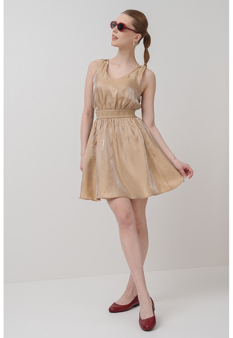 Caracteristici Culoare: maro deschis Stil: casual Material: sintetic Imprimeu: uni Croiala: evazat Lungime: scurta Decolteu: in v Lungime maneca: fara maneca Sistem inchidere: fara inchidere Compozitie Exterior: 80% viscoza