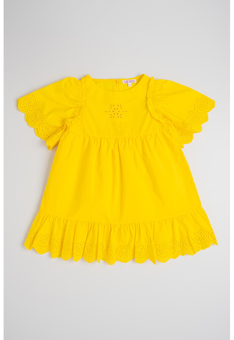 Caracteristici Culoare: galben pai Stil: casual Material: bumbac Imprimeu: uni Croiala: evazat Lungime maneca: maneca scurta Stil decolteu: rotund Detalii: cu decupaj keyhole pe partea din spate