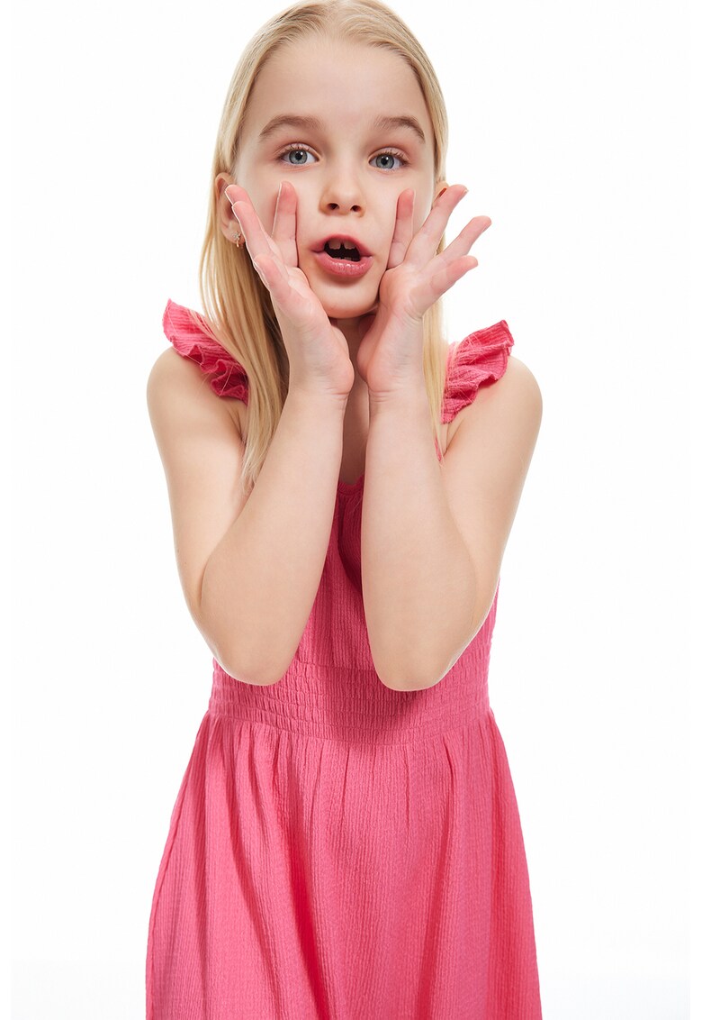 Caracteristici Culoare: fucsia Stil: casual Material: sintetic Imprimeu: uni Croiala: evazat Lungime maneca: fara maneca Stil decolteu: rotund Sistem inchidere: fara inchidere Colectie: primavara