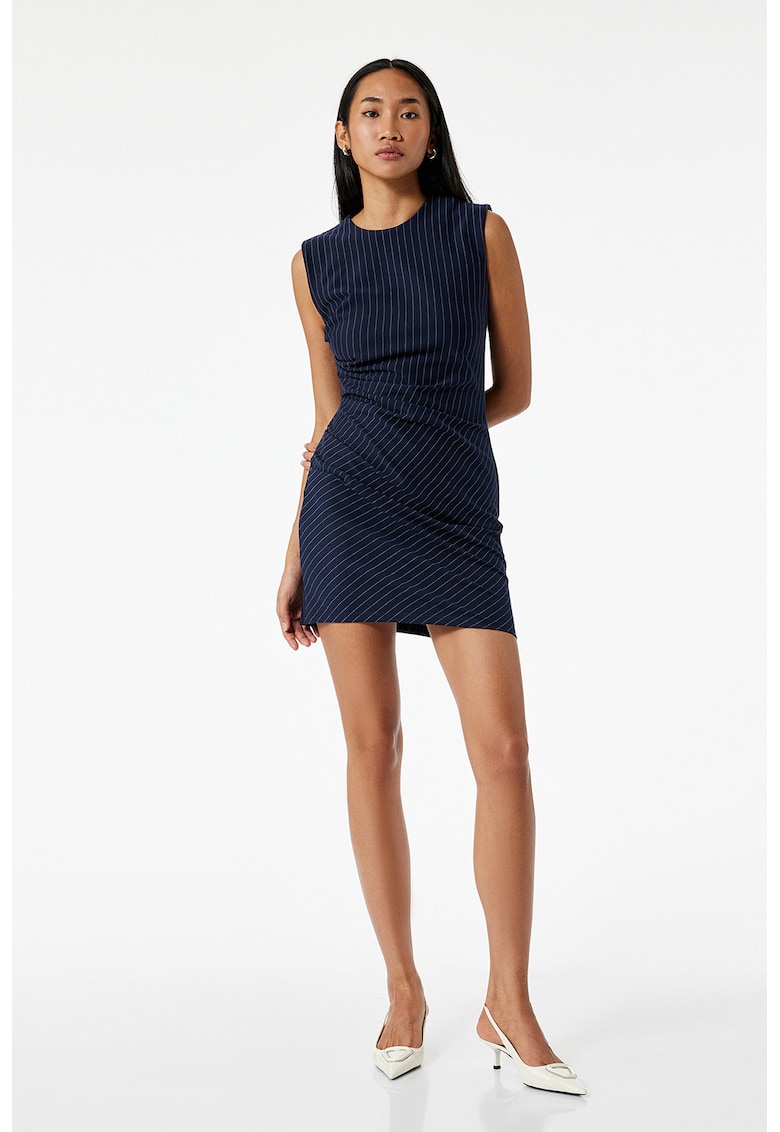 - elastan Imprimeu: dungi Croiala: dreapta Lungime: scurta Decolteu: rotund Lungime maneca: fara maneca Detalii: detaliu cu pliuri pe partea din fata Sistem inchidere: fermoar Compozitie Exterior: 73% poliester