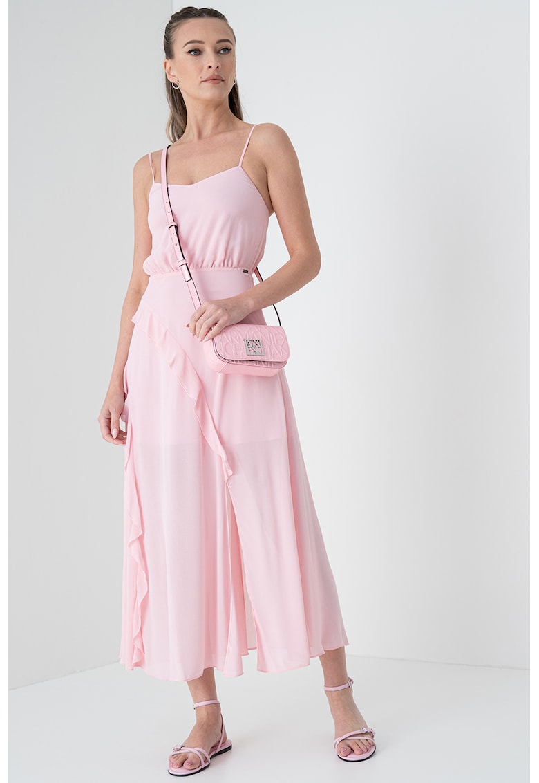 Caracteristici Culoare: roz deschis Stil: casual Material: viscoza Imprimeu: uni Croiala: evazat Lungime: midi Decolteu: sweetheart Barete: ajustabile Lungime maneca: fara maneca Sistem inchidere: fermoar Compozitie Exterior: 100% viscoza Info model Modelul poarta un produs de marimea S/2 IT. Marimi model: 174 cm inaltime