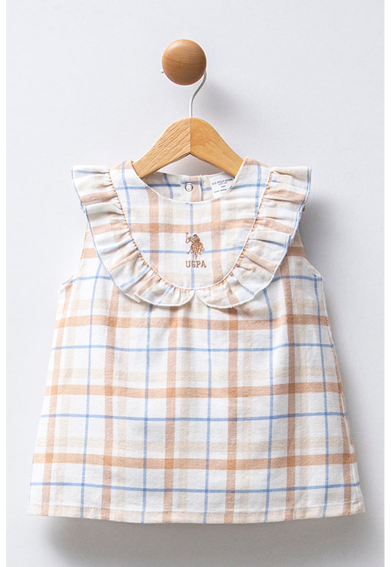 - albastru azur Stil: casual Material: bumbac Imprimeu: carouri Croiala: evazat Lungime maneca: fara maneca Stil decolteu: rotund Sistem inchidere: capse Colectie: primavara