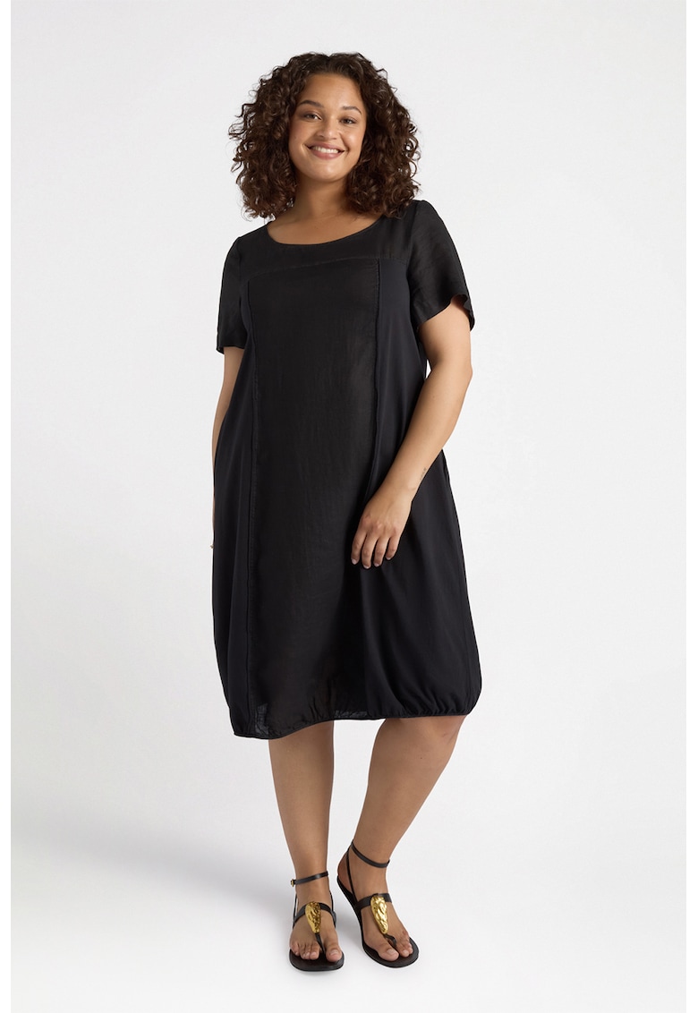 Caracteristici Culoare: negru Stil: casual Material: in Imprimeu: uni Croiala: lejer Lungime: scurta Decolteu: decolteu la baza gatului Lungime maneca: maneca scurta Detalii: disclaimer: acest produs este conceput pentru femeile cu forme ( marime plus). Sistem inchidere: fara inchidere Compozitie Exterior: 100% in Captuseala: 100% bumbac