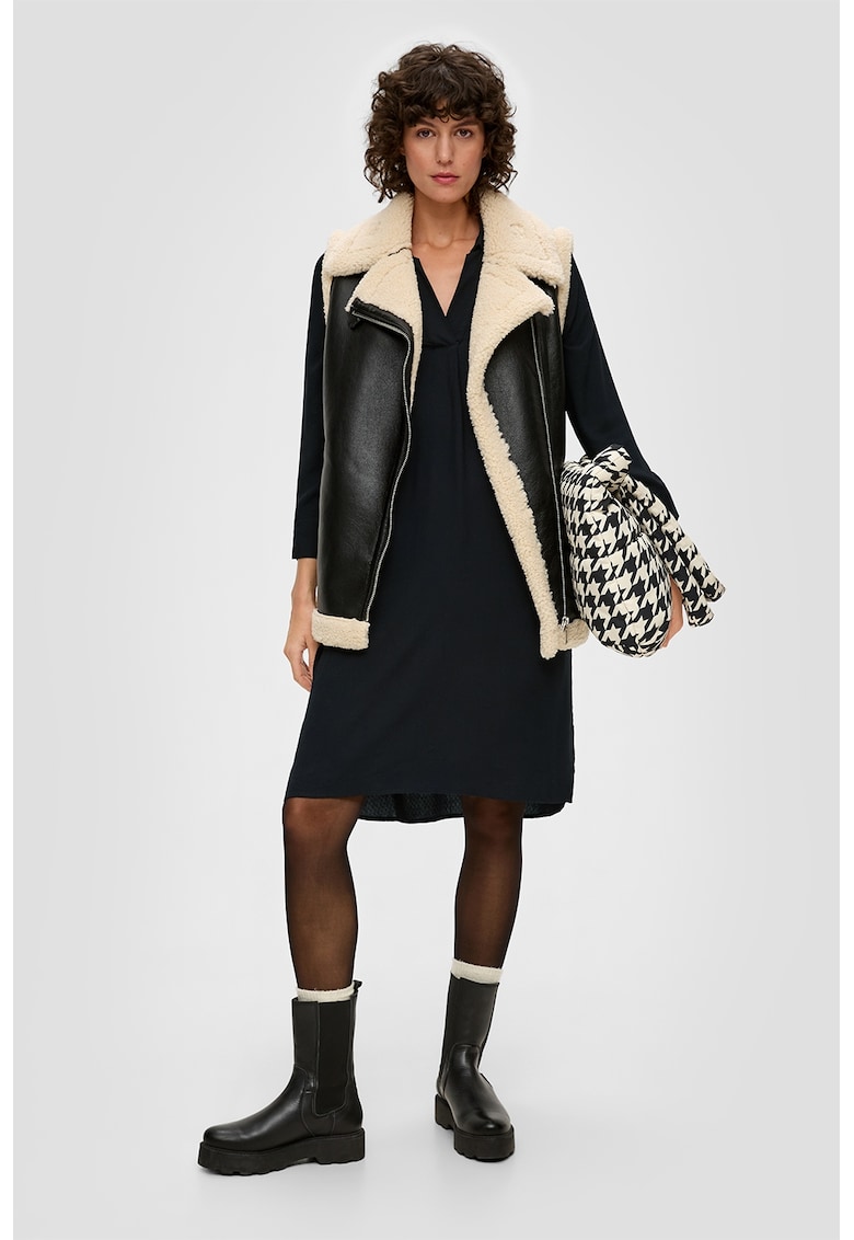 Caracteristici Culoare: negru Stil: casual Material: sintetic Imprimeu: uni Croiala: lejer Lungime: scurta Decolteu: in v Guler: ascutit Lungime maneca: maneca lunga Detalii: slituri laterale Sistem inchidere: fara inchidere Compozitie Exterior: 100% viscoza