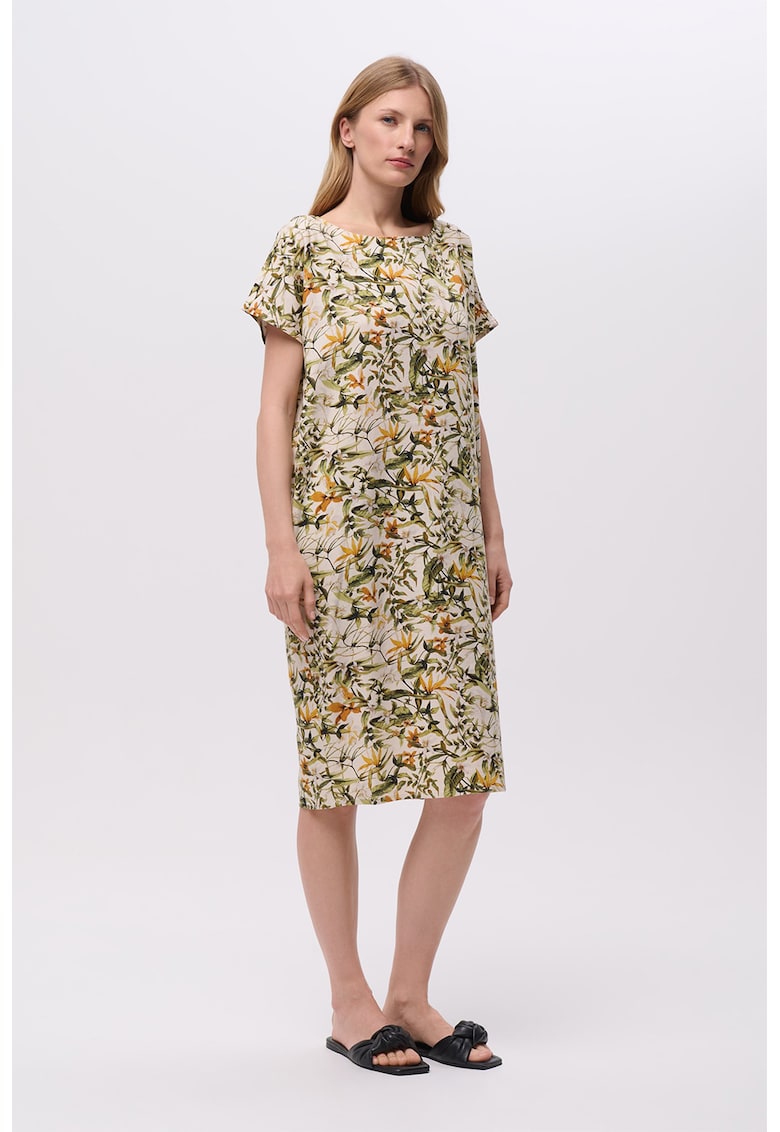 - in Imprimeu: grafic Croiala: dreapta Lungime: midi Decolteu: rotund Lungime maneca: maneca scurta Buzunare: 2 Compozitie Exterior: 55% in