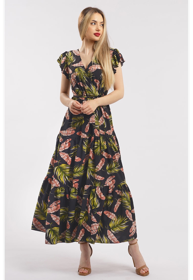 - viscoza Imprimeu: floral Croiala: lejer Lungime: lunga Decolteu: in v Lungime maneca: maneca scurta Sistem inchidere: fara inchidere Compozitie Exterior: 60% viscoza