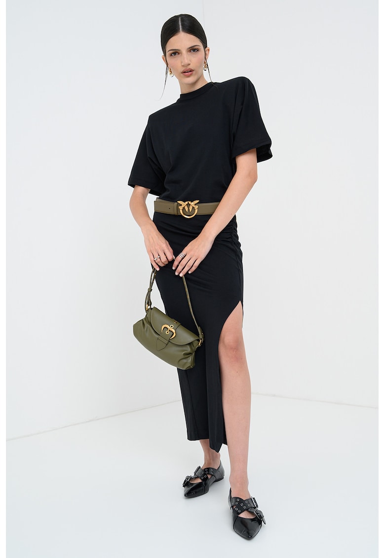 Caracteristici Culoare: negru Stil: casual Material: bumbac Imprimeu: uni Croiala: evazat Lungime: lunga Decolteu: la baza gatului Lungime maneca: maneca medie Compozitie Exterior: 100% bumbac Info model Modelul poarta un produs de marimea S. Marimi model: 178 cm inaltime
