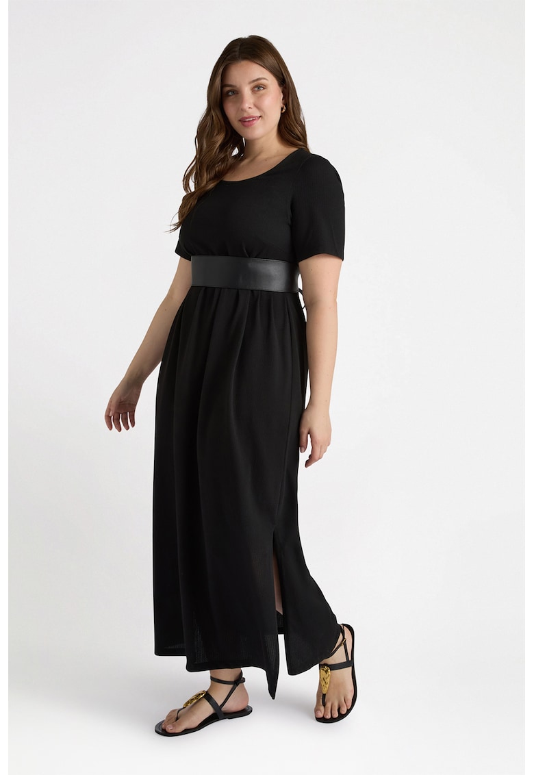 - elastan Imprimeu: uni Croiala: evazat Lungime: lunga Decolteu: rotund Lungime maneca: maneca scurta Detalii: acest produs se adreseaza femeilor cu forme pline (plus size). Compozitie Exterior: 98% poliester