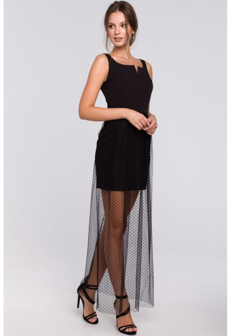 - elastan Imprimeu: uni Croiala: creion Lungime: lunga Decolteu: drept Lungime maneca: fara maneca Detalii: produs in europa Compozitie Exterior: 95% poliester