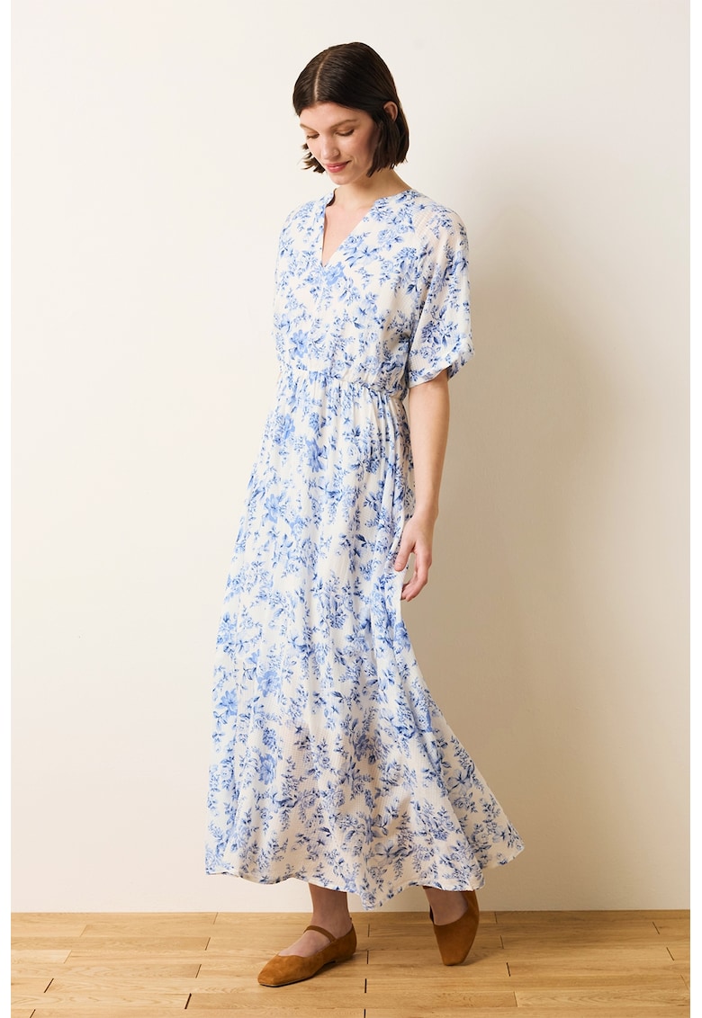 - viscoza Imprimeu: floral Croiala: evazat Lungime: lunga Decolteu: in v Maneci: kimono Lungime maneca: maneca medie Sistem inchidere: fermoar Compozitie Exterior: 75% viscoza