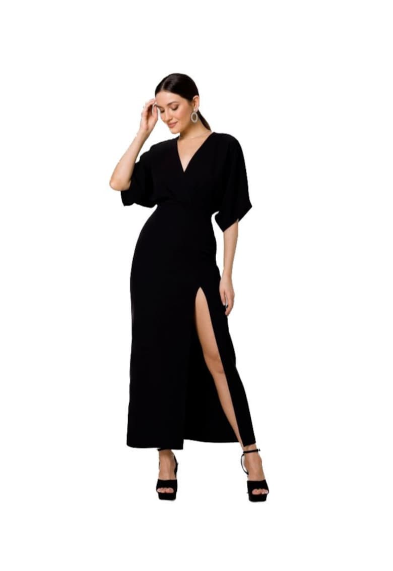 - elastan Imprimeu: uni Croiala: evazat Lungime: lunga Decolteu: cache-coeur Lungime maneca: maneca medie Detalii: produs in europa Compozitie Exterior: 95% poliester 5% elastan