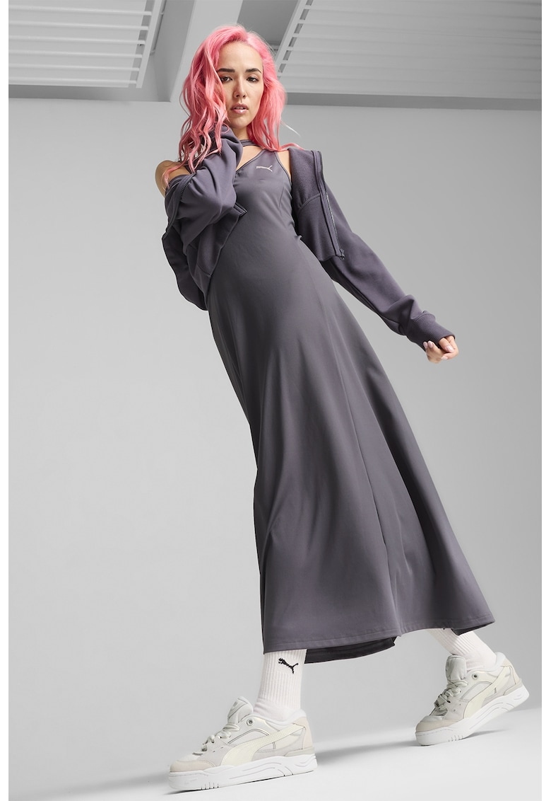 - pe bie Lungime: lunga Decolteu: la baza gatului Lungime maneca: fara maneca Detalii: decupaj Sistem inchidere: fara inchidere Compozitie Exterior: 85% poliester
