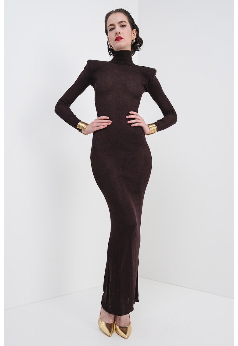 Caracteristici Culoare: maro inchis Stil: casual Material: viscoza Croiala: cambrata Lungime: lunga Lungime maneca: maneca lunga Compozitie Exterior: 100% viscoza Info model Modelul poarta un produs de marimea XS. Marimi model: 174 cm inaltime