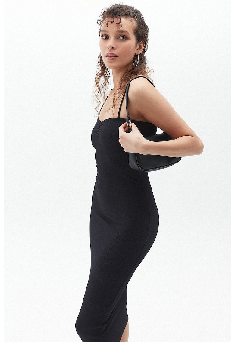- poliamida Imprimeu: uni Croiala: cambrata Lungime: midi Barete: ajustabile Lungime maneca: fara maneca Sistem inchidere: fara inchidere Compozitie Exterior: 91% poliamida