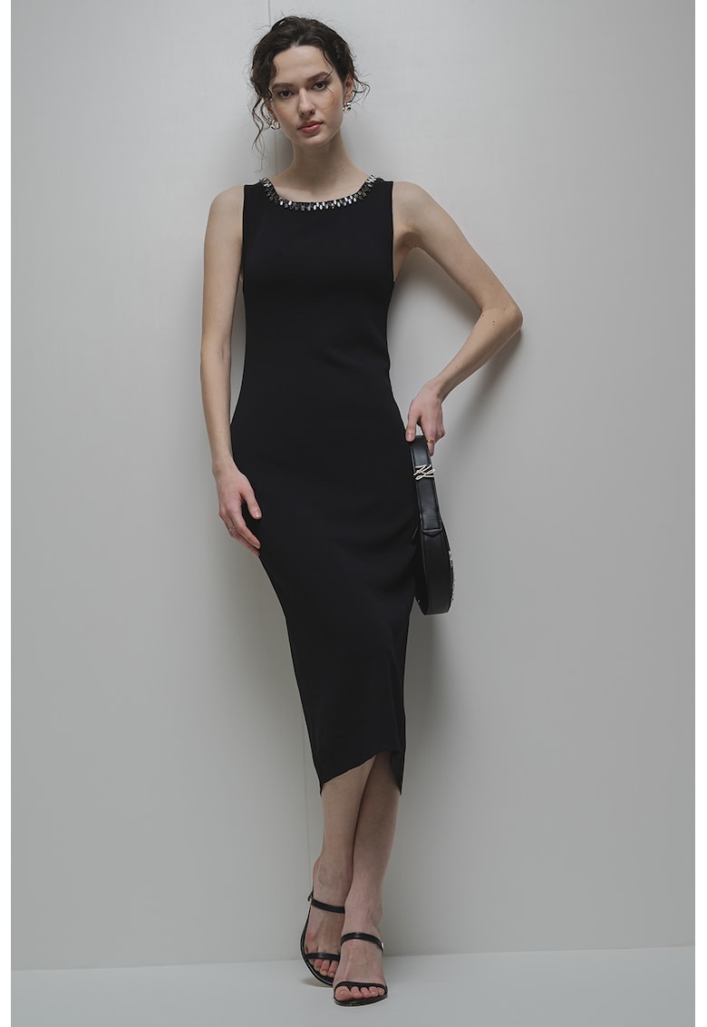 - viscoza Imprimeu: uni Croiala: dreapta Lungime: midi Decolteu: rotund Lungime maneca: fara maneca Compozitie Exterior: 63% viscoza