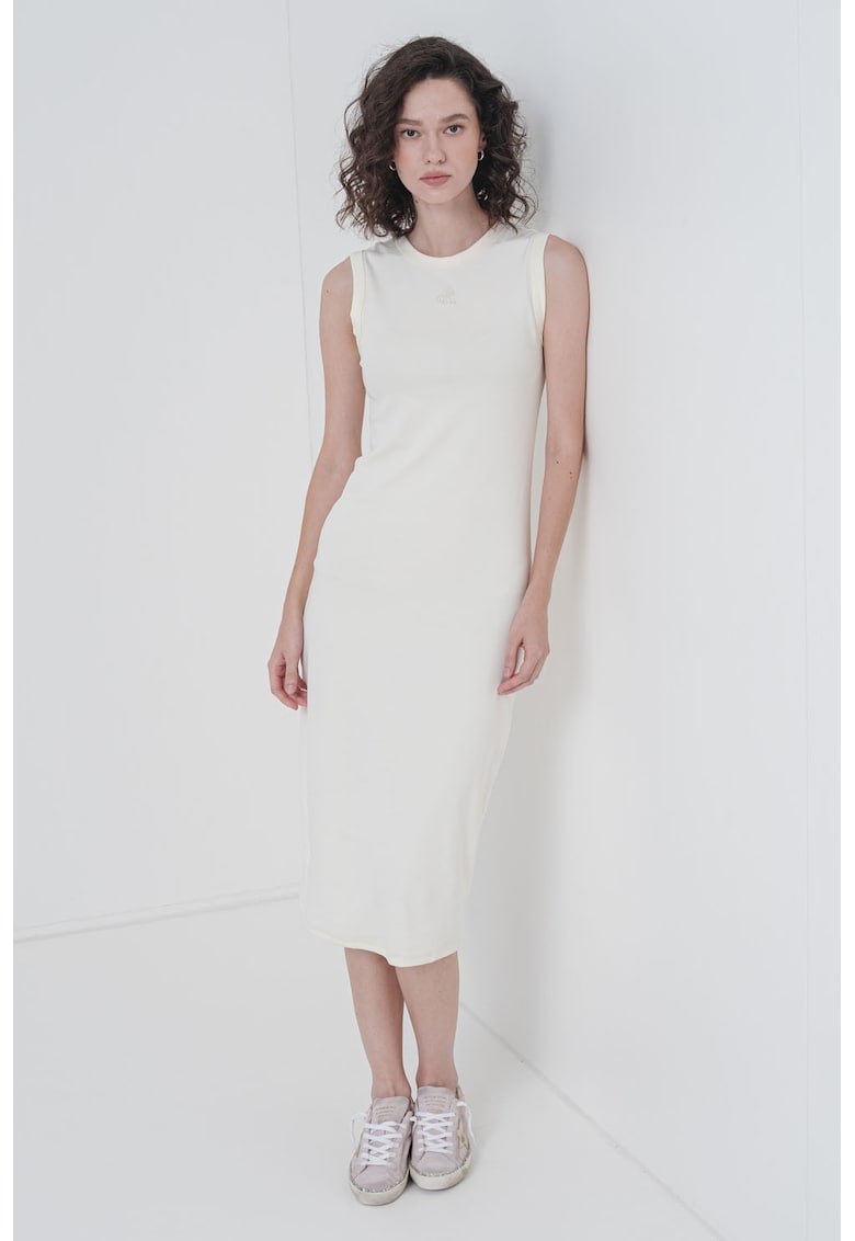 - bumbac Imprimeu: logo Croiala: dreapta Lungime: midi Decolteu: la baza gatului Lungime maneca: fara maneca Sistem inchidere: fara inchidere Compozitie Exterior: 93% bumbac