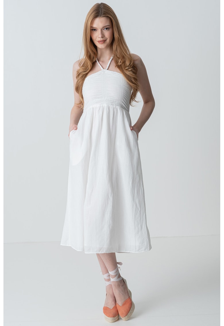 - viscoza Imprimeu: uni Croiala: evazat Lungime: midi Decolteu: halter Lungime maneca: fara maneca Compozitie Exterior: 55% bumbac