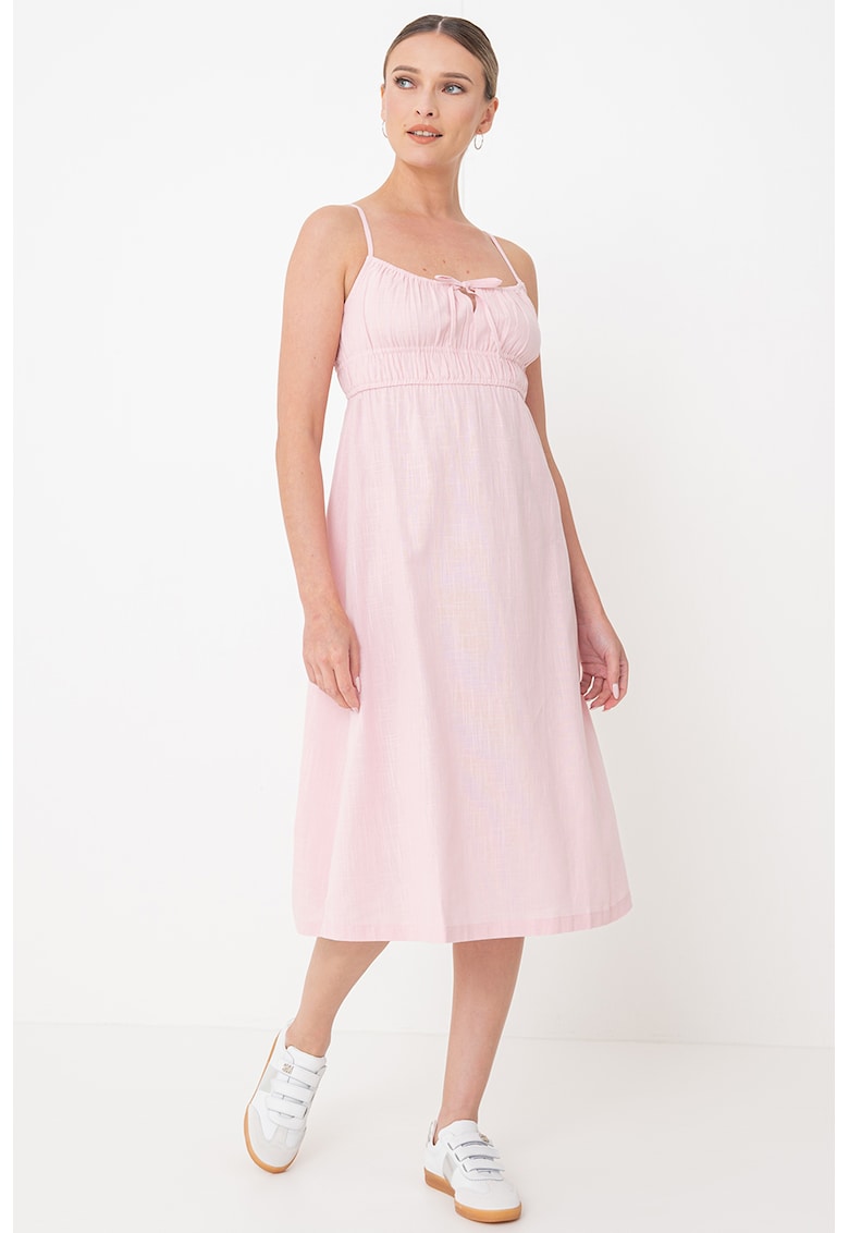 - viscoza Imprimeu: uni Croiala: in a Lungime: midi Decolteu: drept Barete: ajustabile Lungime maneca: fara maneca Detalii: insertii elastice