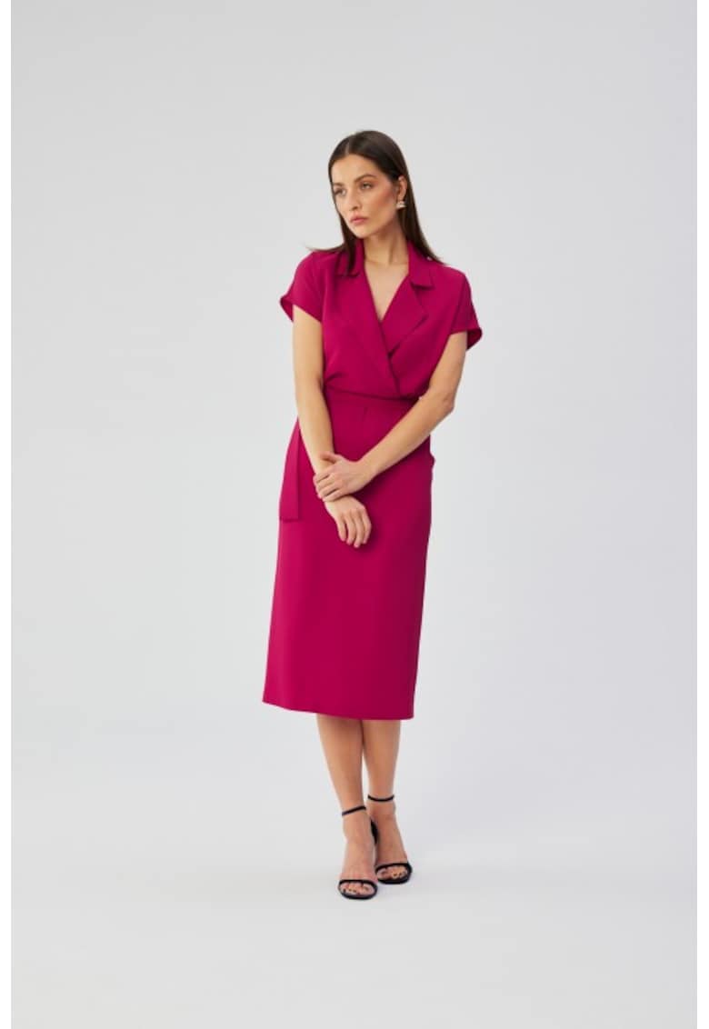 - elastan Imprimeu: uni Croiala: evazat Lungime: midi Decolteu: cache-coeur Lungime maneca: maneca scurta Detalii: produs in europa Compozitie Exterior: 95% poliester