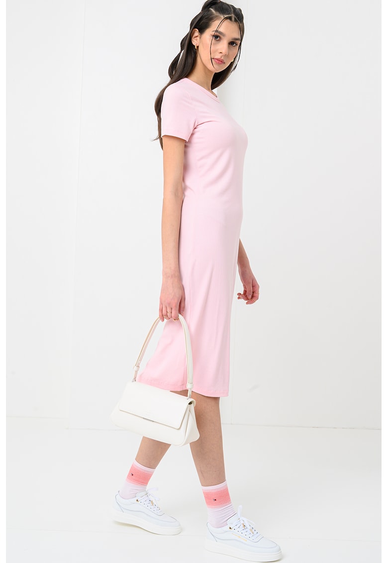 Caracteristici Stil: casual Material: sintetic Imprimeu: uni Croiala: dreapta Lungime: midi Decolteu: la baza gatului Lungime maneca: maneca scurta Compozitie Exterior: 60% poliester reciclat