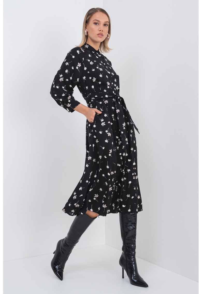 - grej Stil: casual Material: viscoza Imprimeu: floral Croiala: in a Lungime: midi Lungime maneca: maneca trei sferturi Sistem inchidere: nasturi