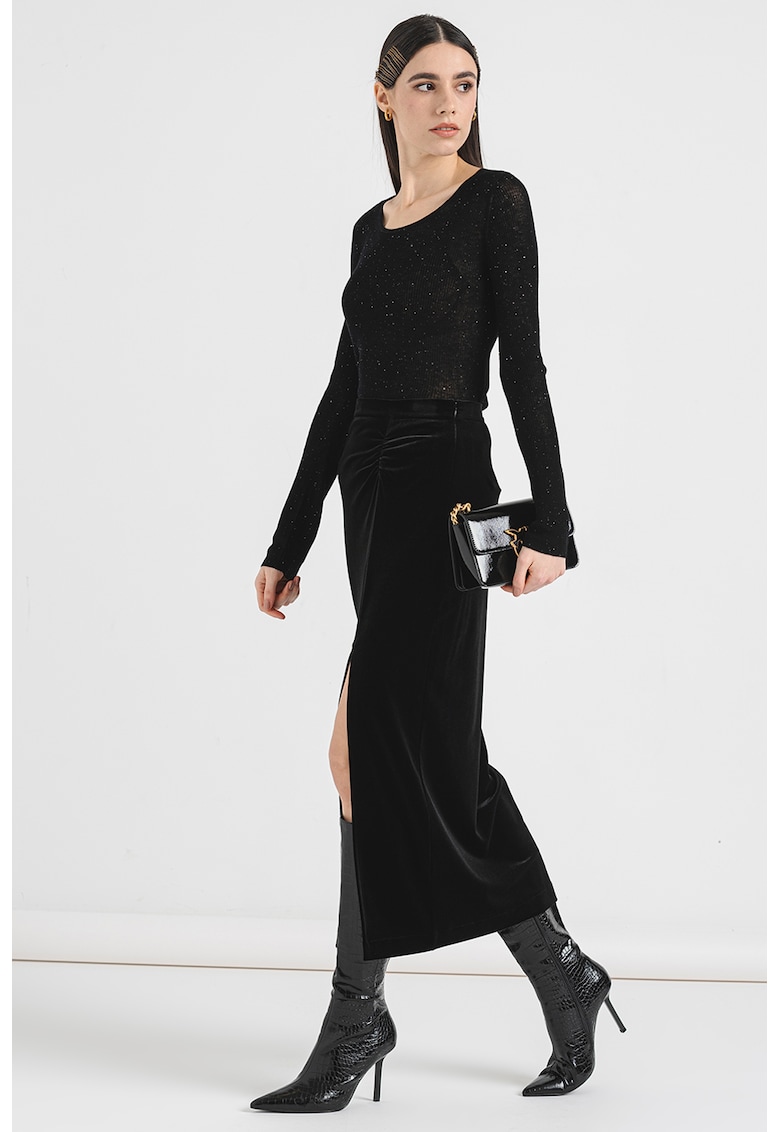 Caracteristici Culoare: negru Stil: casual Imprimeu: uni Croiala: dreapta Material: poliester Talie: inalta Lungime: midi Compozitie Exterior: 92% poliester
