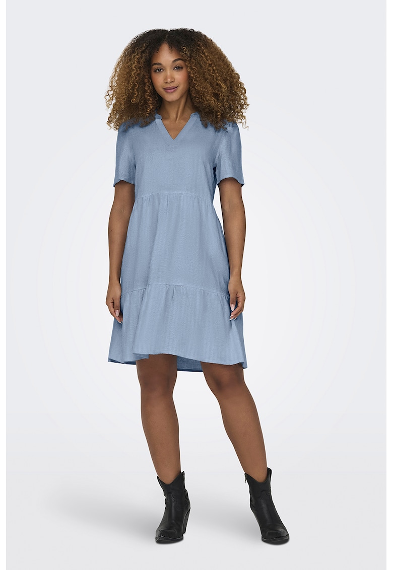 - in Imprimeu: uni Croiala: evazat Lungime: midi Decolteu: in v Lungime maneca: maneca scurta Detalii: volane Sistem inchidere: fara inchidere Compozitie Exterior: 70% viscoza