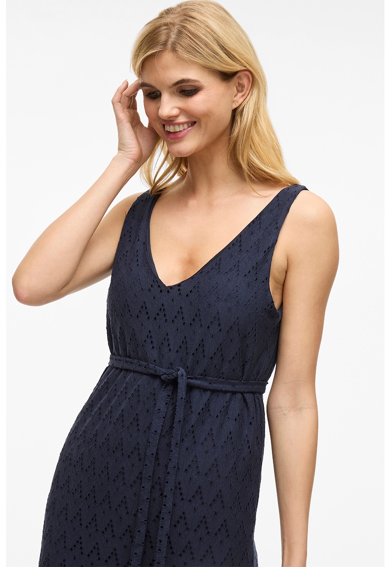 - bumbac Imprimeu: uni Croiala: dreapta Lungime: midi Decolteu: in v Lungime maneca: fara maneca Detalii: slituri laterale