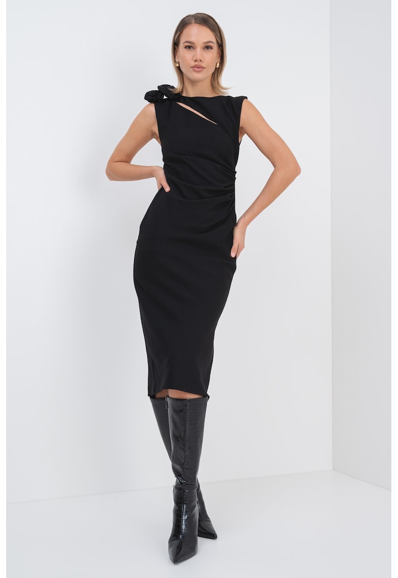 - lana Imprimeu: uni Croiala: dreapta Lungime: midi Decolteu: la baza gatului Lungime maneca: fara maneca Detalii: slit pe partea din spate