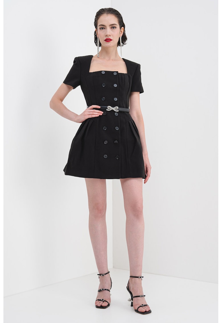 Caracteristici Culoare: negru Stil: casual Material: poliester Imprimeu: uni Croiala: evazat Lungime: scurta Decolteu: patrat Lungime maneca: maneca scurta Compozitie Exterior: 100% poliester Info model Modelul poarta un produs de marimea S. Marimi model: 174 cm inaltime