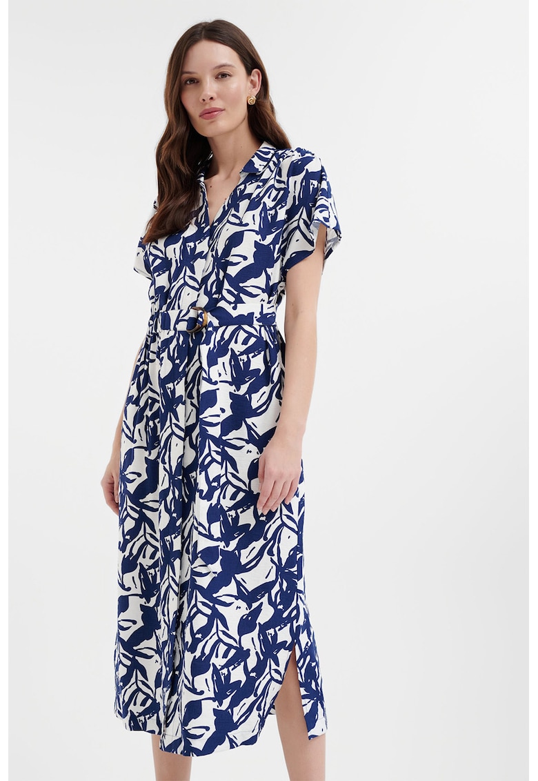- viscoza Imprimeu: floral Croiala: petrecuta Lungime: midi Decolteu: in v Lungime maneca: maneca scurta Talie: curea Sistem inchidere: catarama Compozitie Exterior: 85% viscoza