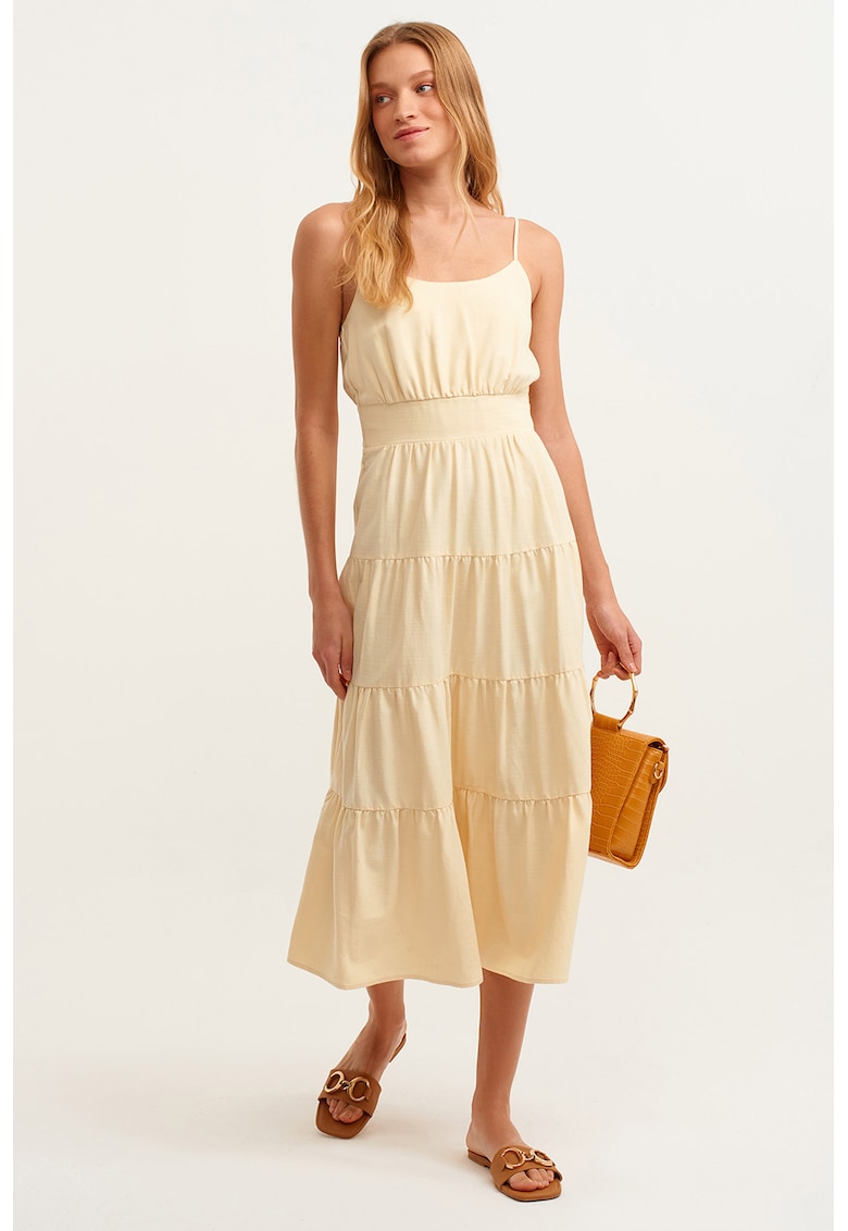 - stratificata Lungime: midi Decolteu: rotund Barete: 2 inguste