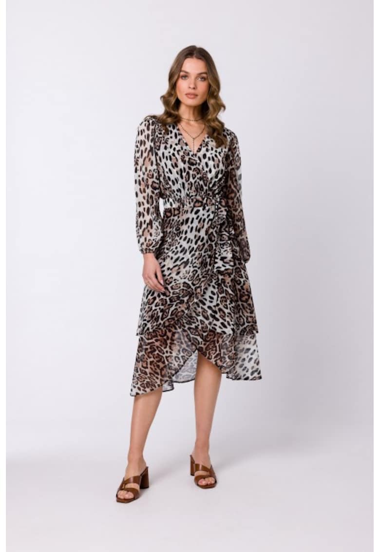 - elegant Material: poliester Imprimeu: animal print Croiala: petrecuta Lungime: midi Decolteu: cache-coeur Lungime maneca: maneca trei sferturi Detalii: produs in europa Compozitie Exterior: 100% poliester