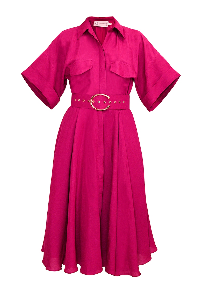 - sustenabil Imprimeu: uni Croiala: evazat Lungime: midi Guler: clasic Maneci: pliabile Lungime maneca: maneca medie Detalii: curea asortata