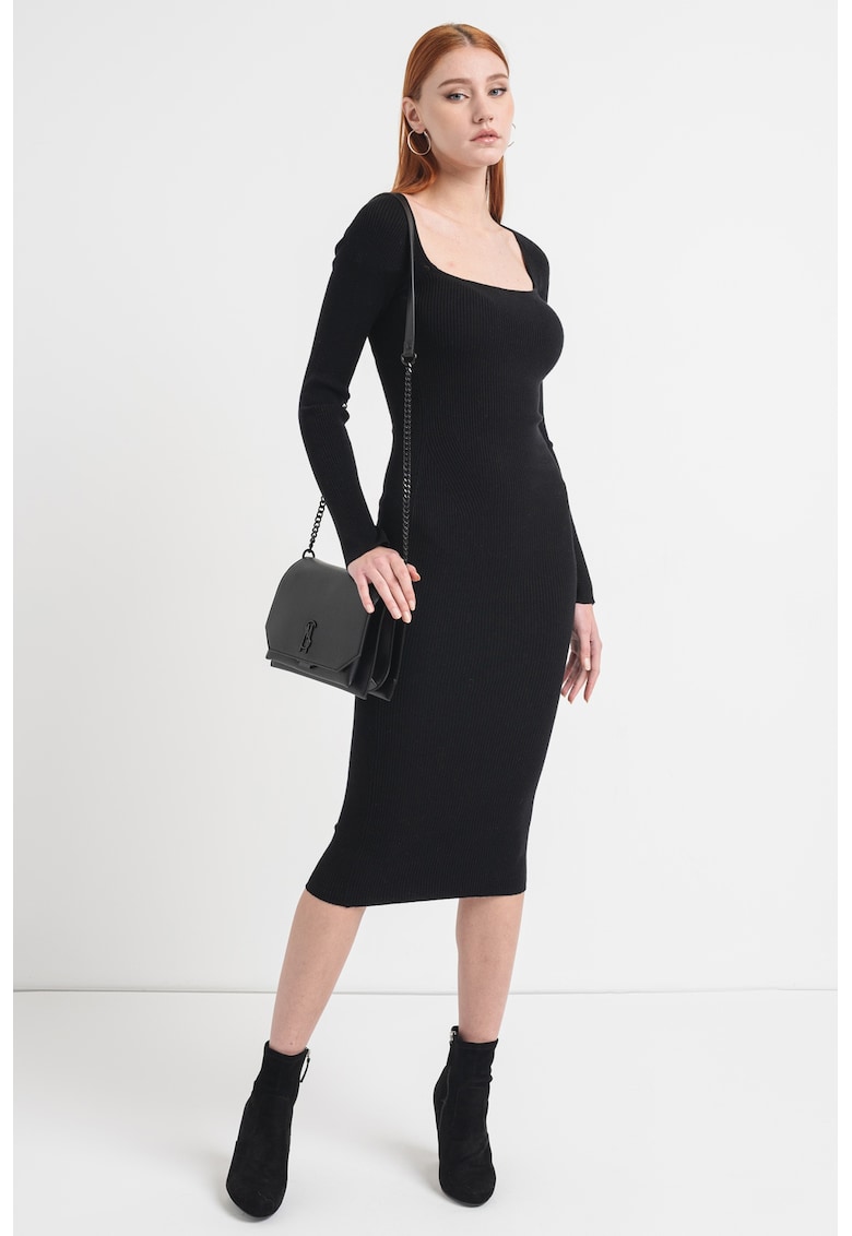 - viscoza Imprimeu: uni Croiala: cambrata Lungime: midi Decolteu: patrat Lungime maneca: maneca lunga Sistem inchidere: fara inchidere Compozitie Exterior: 50% viscoza eco®