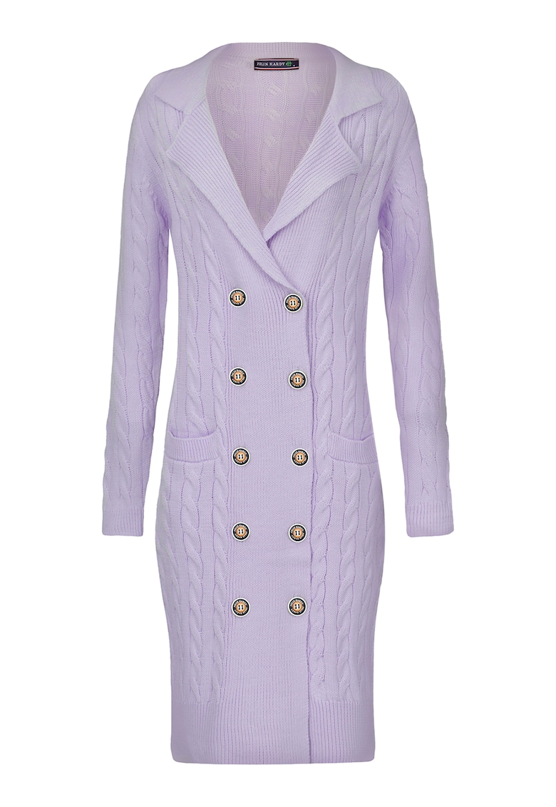 - tricot Imprimeu: uni Croiala: bodycon Lungime: midi Guler: cu revere Lungime maneca: maneca lunga Buzunare: frontale Detalii: design cu torsade