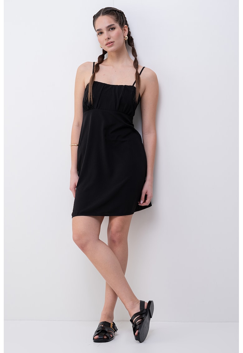 - elastan Imprimeu: uni Croiala: evazat Lungime: scurta Decolteu: patrat Lungime maneca: fara maneca Sistem inchidere: fermoar Compozitie Exterior: 50% poliester reciclat