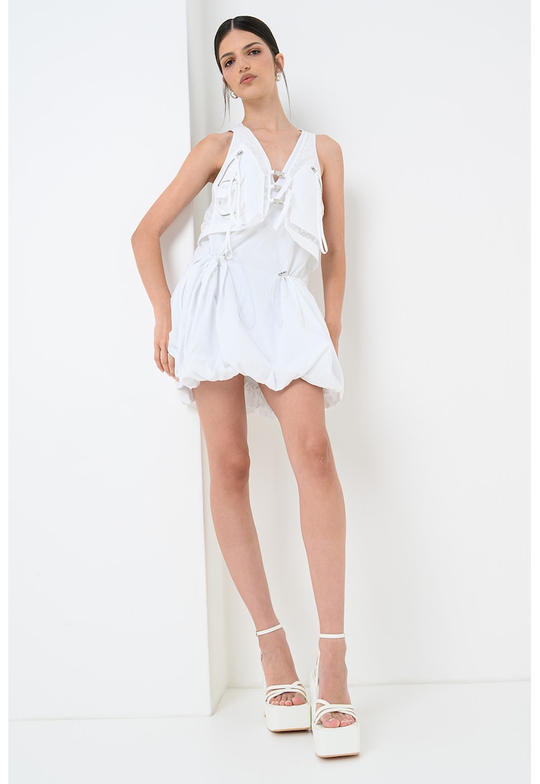 Caracteristici Culoare: alb optic Stil: casual Material: bumbac Imprimeu: uni Croiala: evazat Lungime: scurta Lungime maneca: fara maneca Sistem inchidere: fara inchidere Compozitie Exterior: 100% bumbac Info model Modelul poarta un produs de marimea S. Marimi model: 178 cm inaltime