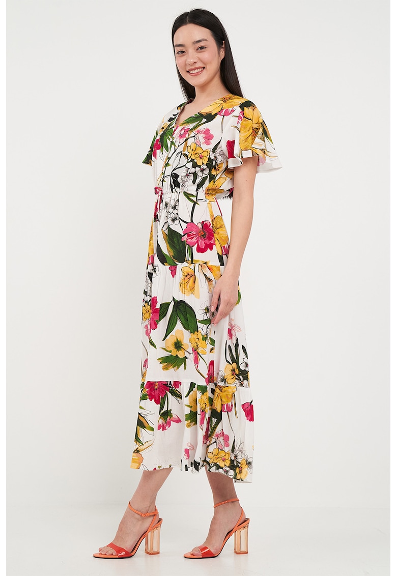 - verde inchis Stil: casual Material: viscoza Imprimeu: floral Croiala: in a Lungime: midi Decolteu: in v Maneci: fluture Lungime maneca: maneca scurta Talie: reglabila Detalii: fenta cu nasturi Compozitie Exterior: 100% viscoza