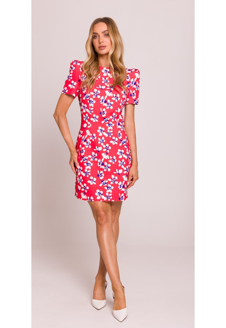 - elastan Imprimeu: floral Croiala: evazat Lungime: scurta Decolteu: rotund Lungime maneca: maneca scurta Detalii: produs in europa Compozitie Exterior: 95% poliester 5% elastan Captuseala: 95% poliester 5% elastan Material garnituri: 95% poliester 5% elastan