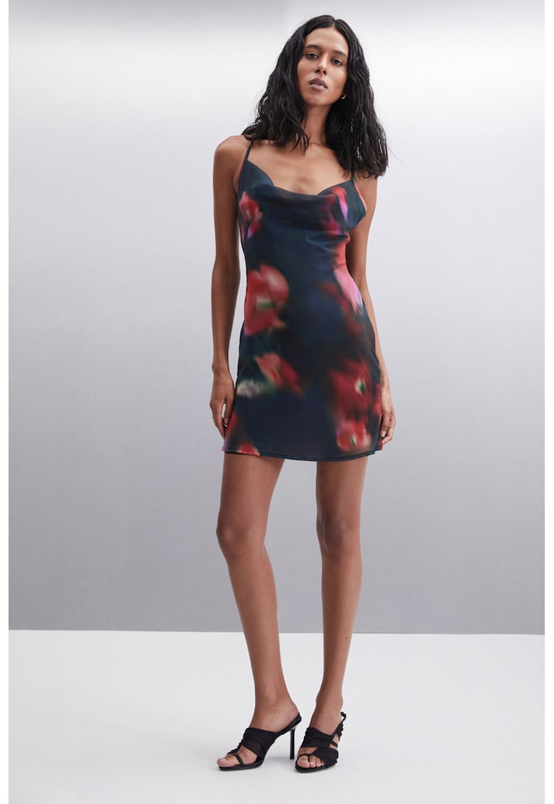 - albastru Stil: casual Material: sintetic Imprimeu: floral Croiala: dreapta Lungime: scurta Decolteu: in v Barete: inguste Lungime maneca: fara maneca Sistem inchidere: fara inchidere Compozitie Exterior: 100% poliester