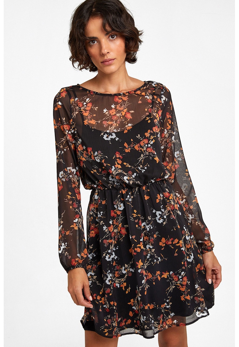 - transparent Stil: casual Material: poliester Imprimeu: floral Croiala: in a Lungime: scurta Decolteu: barcuta Maneci: semitransparente Lungime maneca: maneca lunga Talie: reglabila Compozitie Exterior: 100% poliester