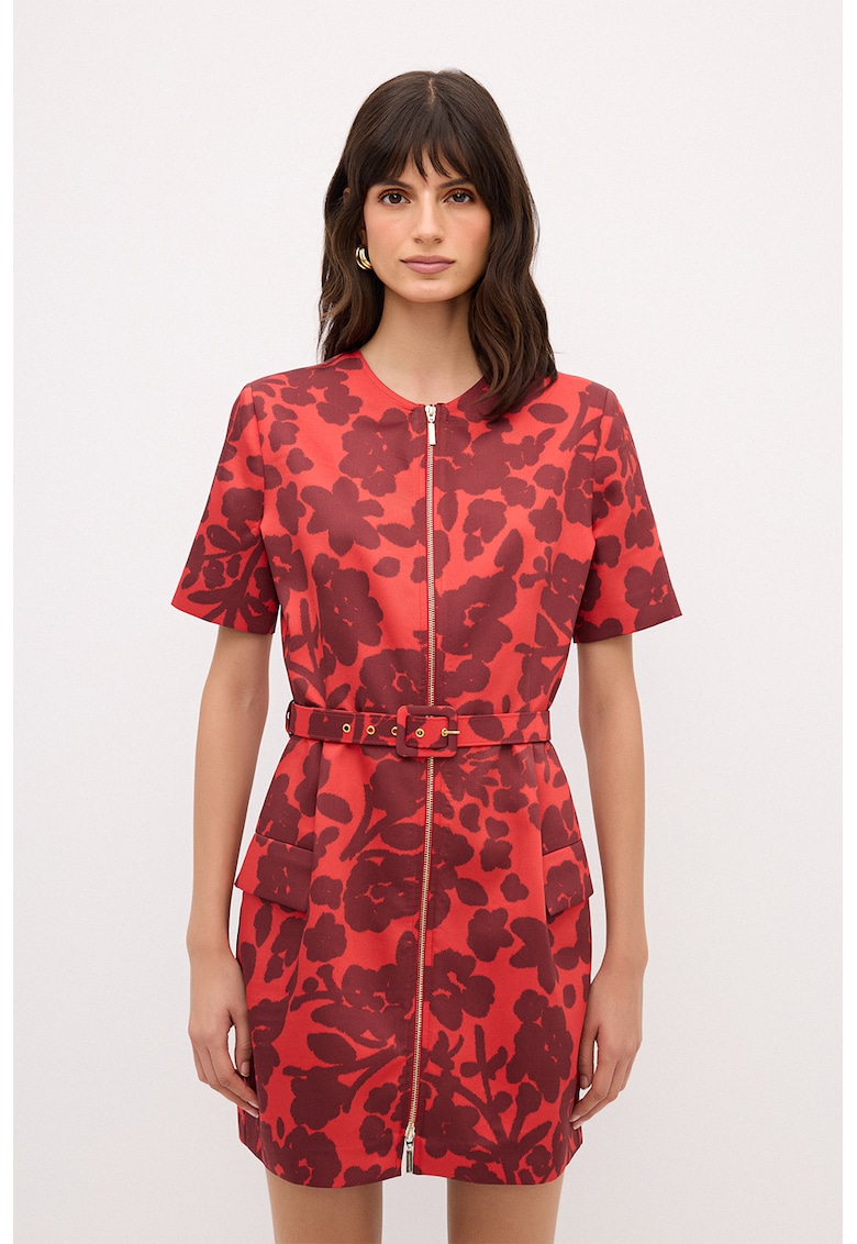 - coral Stil: casual Material: poliester Imprimeu: floral Croiala: dreapta Lungime: scurta Decolteu: la baza gatului Lungime maneca: maneca scurta Talie: curea Sistem inchidere: fermoar Compozitie Exterior: 100% poliester reciclat