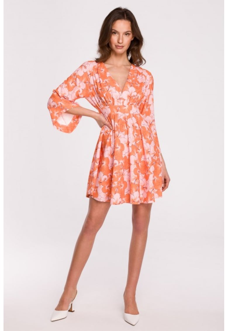 - elegant Material: poliester Imprimeu: floral Croiala: lejer Lungime: midi Decolteu: adanc in v Lungime maneca: maneca medie Detalii: produs in europa Compozitie Exterior: 100% poliester Captuseala: 100% poliester Material garnituri: 100% poliester