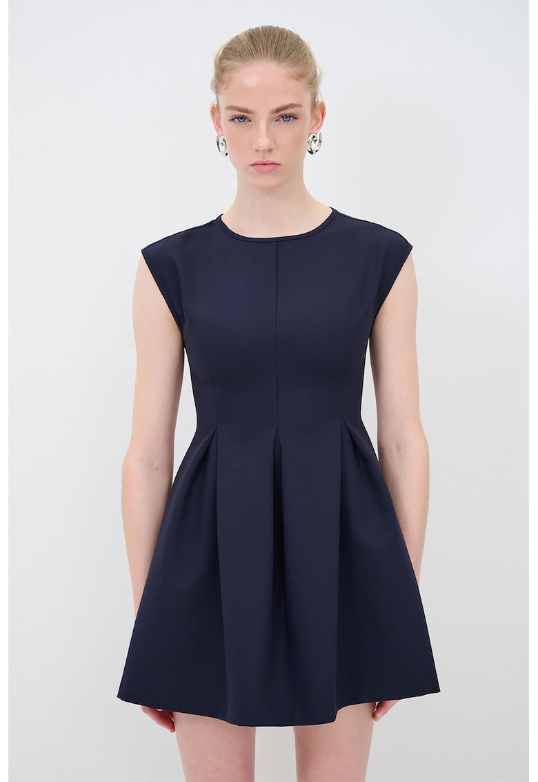 - viscoza Imprimeu: uni Croiala: evazat Lungime: scurta Decolteu: la baza gatului Lungime maneca: maneca scurta Detalii: marimea este mai mica decat standardul