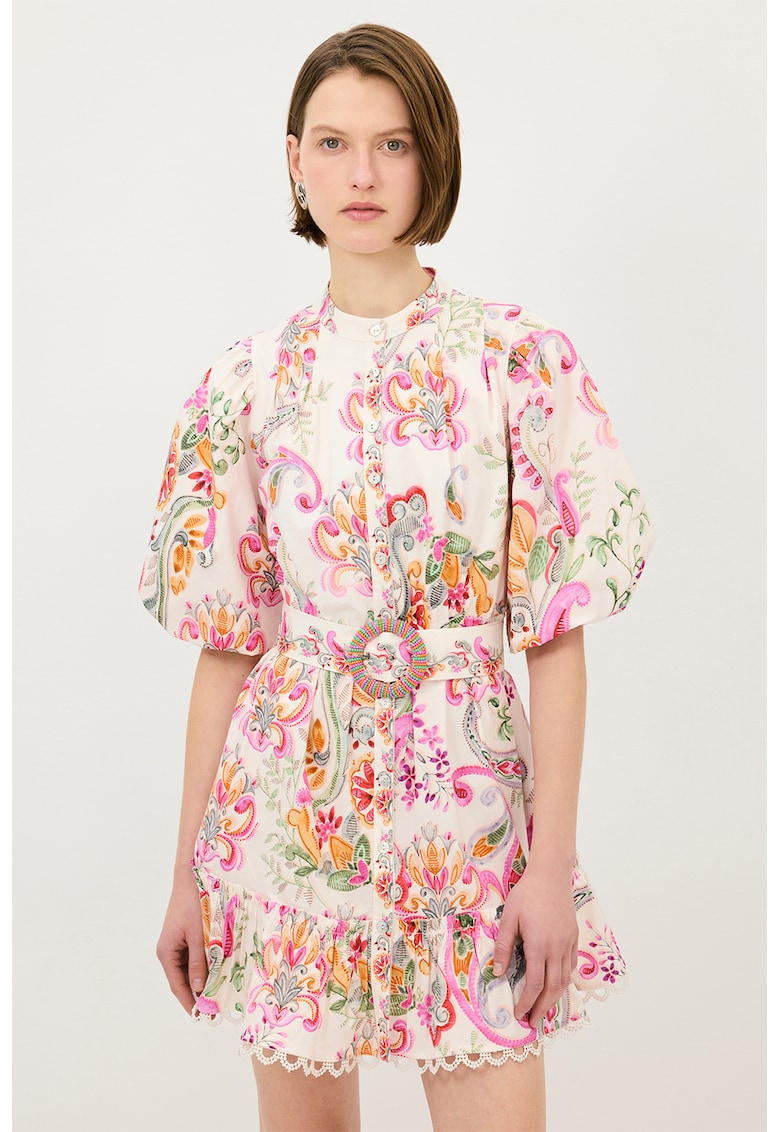 - verde deschis Stil: casual Material: bumbac Imprimeu: floral Croiala: evazat Lungime: scurta Decolteu: decolteu la baza gatului Maneci: bufante Lungime maneca: maneca medie Detalii: cordon in talie Compozitie Exterior: 97% bumbac